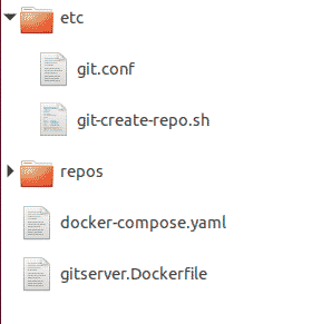 $ mkdir -p gitserver/{repos,etc}
